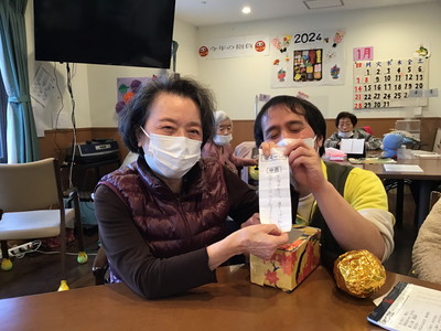 令和6年 杉山神社へ初詣に行き、しおりレクはおみくじや百人一首、今年の抱負を個々に考えて頂き居室に貼りだしています~~