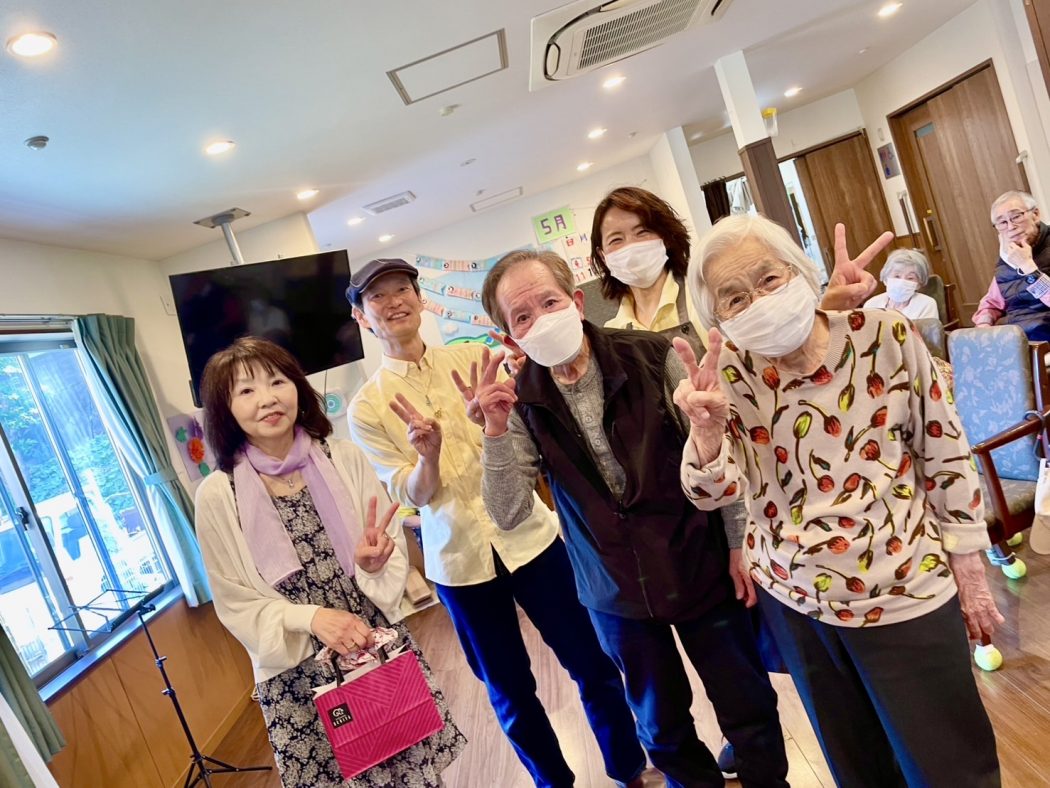 5月4日ご利用者様の娘様とお友達がウクレレ慰問に来てくださいました(^^♪