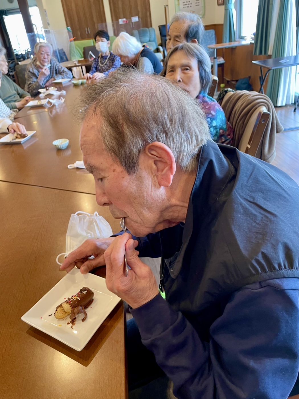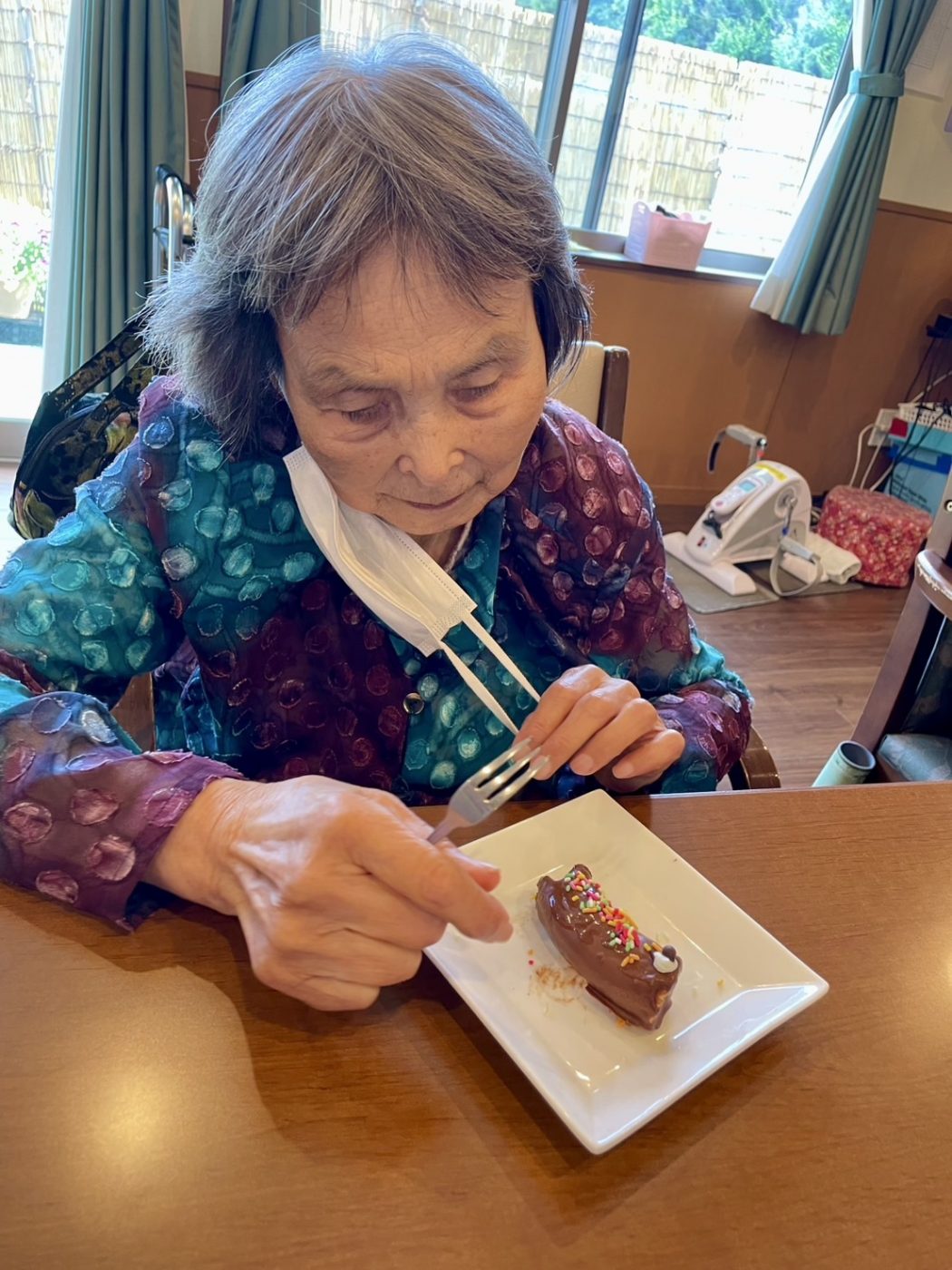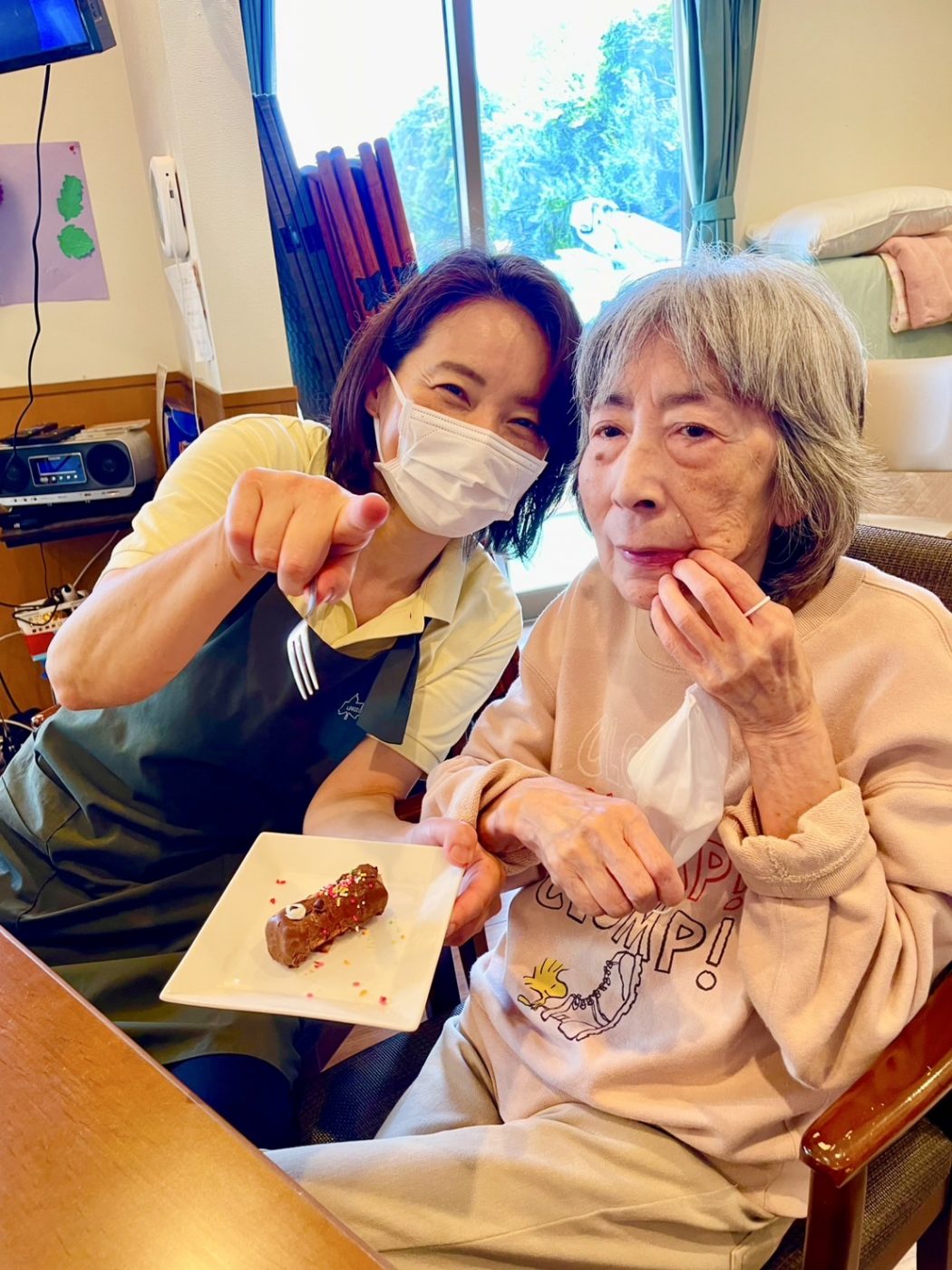 端午の節句のおやつは皆さん手作り(^_-)-☆チョコバナナを作り・・鯉のぼりのアレンジ♡あやめの折り紙作品も好評で、カメラを向けるとにっこり(‘◇’)ゞ