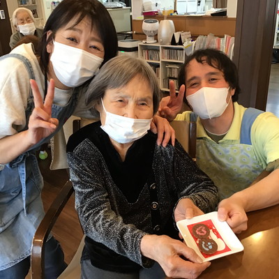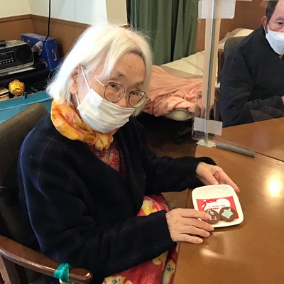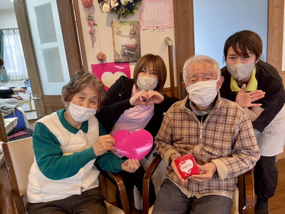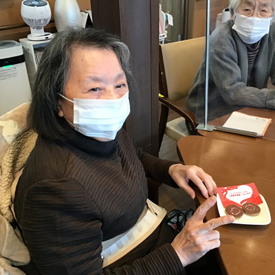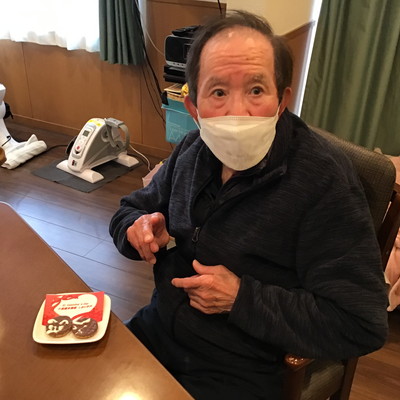 しおり平戸のダンディ男性利用者様方は照れながらも笑顔でチョコを