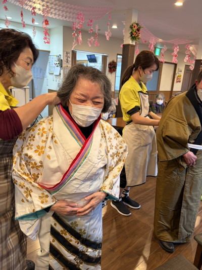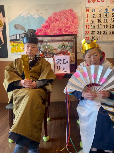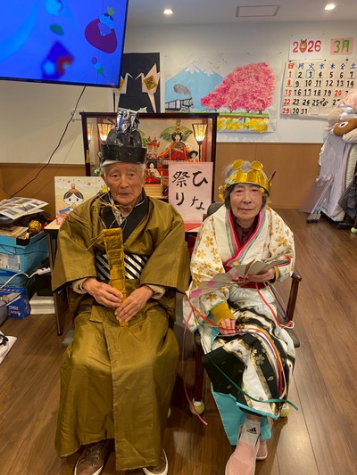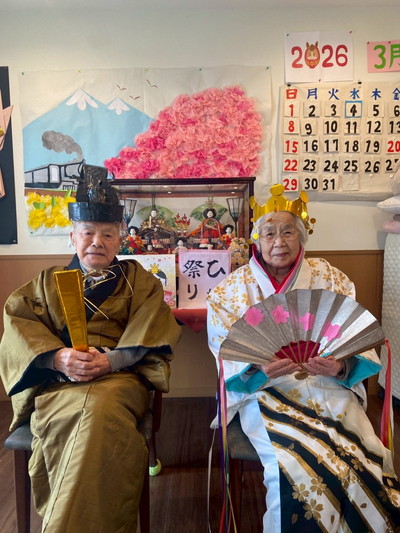 BLOG2026.03.05 🎎ひなまつりイベント🎎 三月に入りひな祭りイベントを行いました(^^♪ お着物に着替えて頂き・・・ じゃーん!!今日は私の晴れ姿~♪ きまってますねー💘 冠と扇、柄杓はスタッフ手作りです(^^♪ 利用者様が書いてくださった「ひなまつり」のお習字 本物のお内裏様とお雛様に負けていませんっ(#^.^#) いいお写真ですね! 初めて着たわ(*^▽^*) さてさて ひな祭り おやつレクレーションスタート! ホットプレート二台 フル稼働で焼き焼き!スタッフ 一生懸命に焼いてます! わー!!桜餅が出来ました🎎華やかです お抹茶付きです。春を感じさせますね🌸 これはすごいね!と喜んで頂きました! 桜の花の塩漬けが綺麗ですね この日の昼食もこんなに華やかでした。皆様とひな祭りイベントが盛大に行うことが出来ました(*^▽^*) 小規模多機能しおり 平戸 〒240-0033 横浜市戸塚区平戸2-17-12 045-828-3215 詳細はこちら 関連する記事 BLOG 2026.02.21 🍲鍋パーティー開催🍲 BLOG 2026.02.17 🍫Happy♡Valentine🍫 BLOG 2026.02.08 👹節分イベント👹 小規模多機能 平戸 2026.01.14 🎍初詣🚙