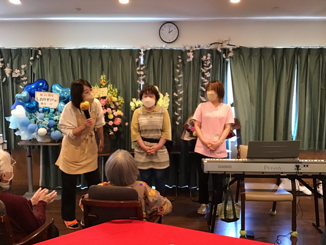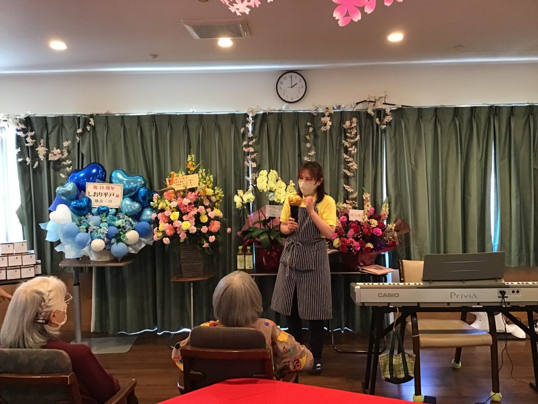 日々利用者様、ご家族様のご支援のお蔭でこの度しおり平戸は開所10周年を迎える事が出来ました。二日間に渡って記念イベントを開催致しました。